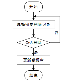 用户选择需要删除的记录后,系统判断是否确认删除。若未确认,返回选择环节;若确认删除,则更新数据库,删除对应记录,完成操作后流程结束。删除信息流程图如图3-8所示。
