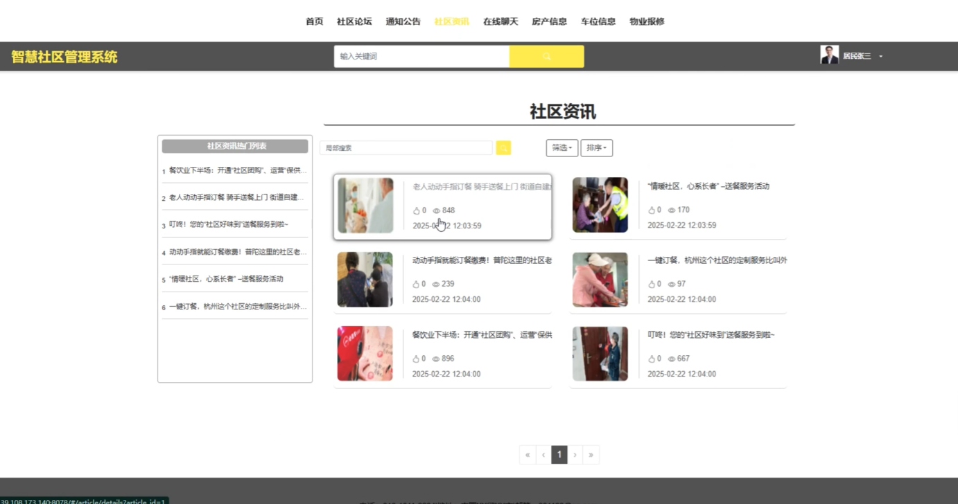 社区资讯:浏览社区新闻、活动信息等,丰富居民生活。支持按照时间或类别筛选资讯内容。