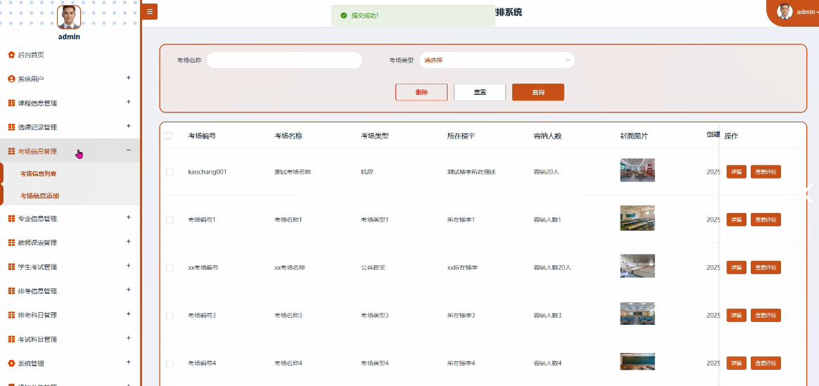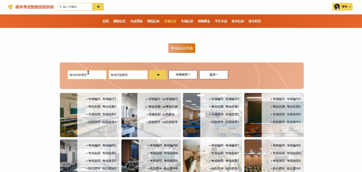 设置和维护考场的相关信息,如考场位置、容量及使用时间,确保考试安排合理且资源得到充分利用。考场信息管理界面如图5-11所示。