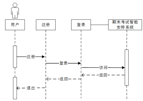 用户通过注册模块发送注册请求,系统完成注册后返回确认信息。随后,用户通过登录模块发送登录请求,系统验证用户信息后允许访问目标系统。用户完成操作后可选择退出,系统终止会话。注册时序图,如图4-3所示。