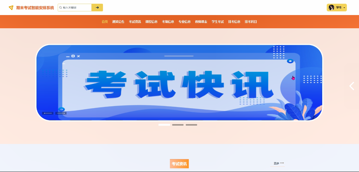 提供一个信息聚合的平台,展示最新通知公告、热门考试资讯以及个性化的推荐内容,帮助学生快速了解最新动态。首页界面如图5-2所示。