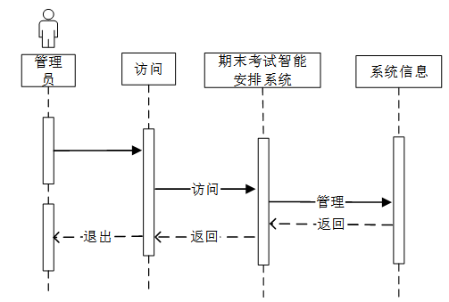 管理员通过访问系统发起请求,系统接收访问后转向系统信息模块进行管理操作。管理完成后,系统返回管理结果至系统,最终反馈给管理员,管理员可选择退出。管理员管理系统信息时序图如图4-6所示。