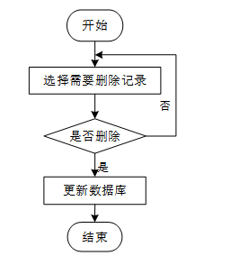 用户选择需要删除的记录后,系统判断是否确认删除。若未确认,返回选择环节;若确认删除,则更新数据库,删除对应记录,完成操作后流程结束。删除信息流程图如图3-9所示。