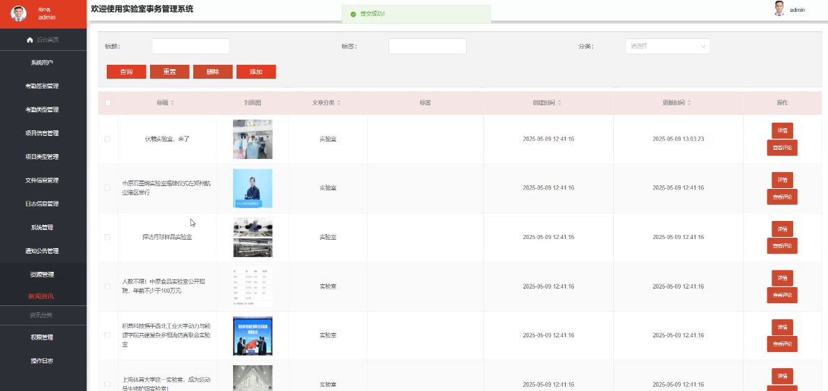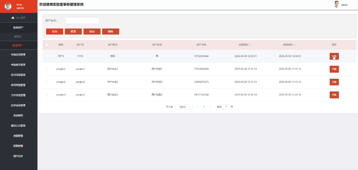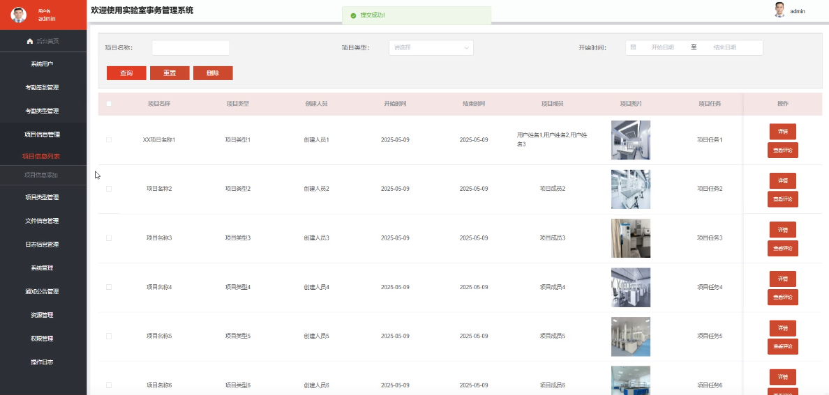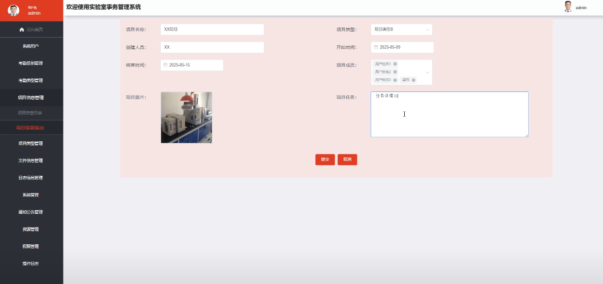 - 项目信息管理:管理员具备对实验室科研项目的新增、编辑、删除和查询权限,能够实现对项目全生命周期的管理,确保项目信息的及时更新和规范管理。