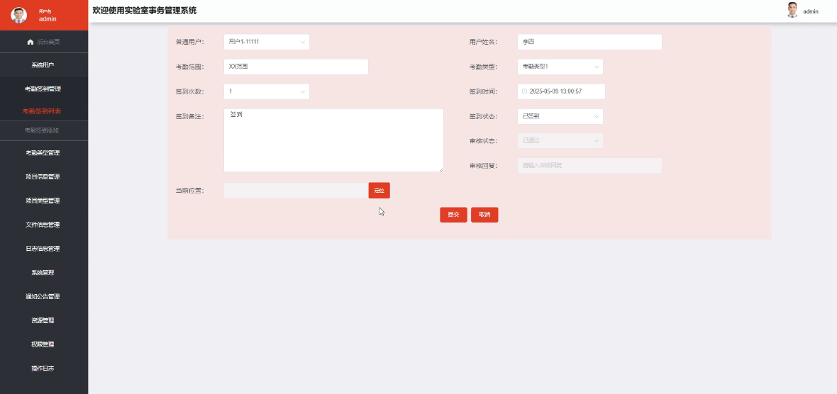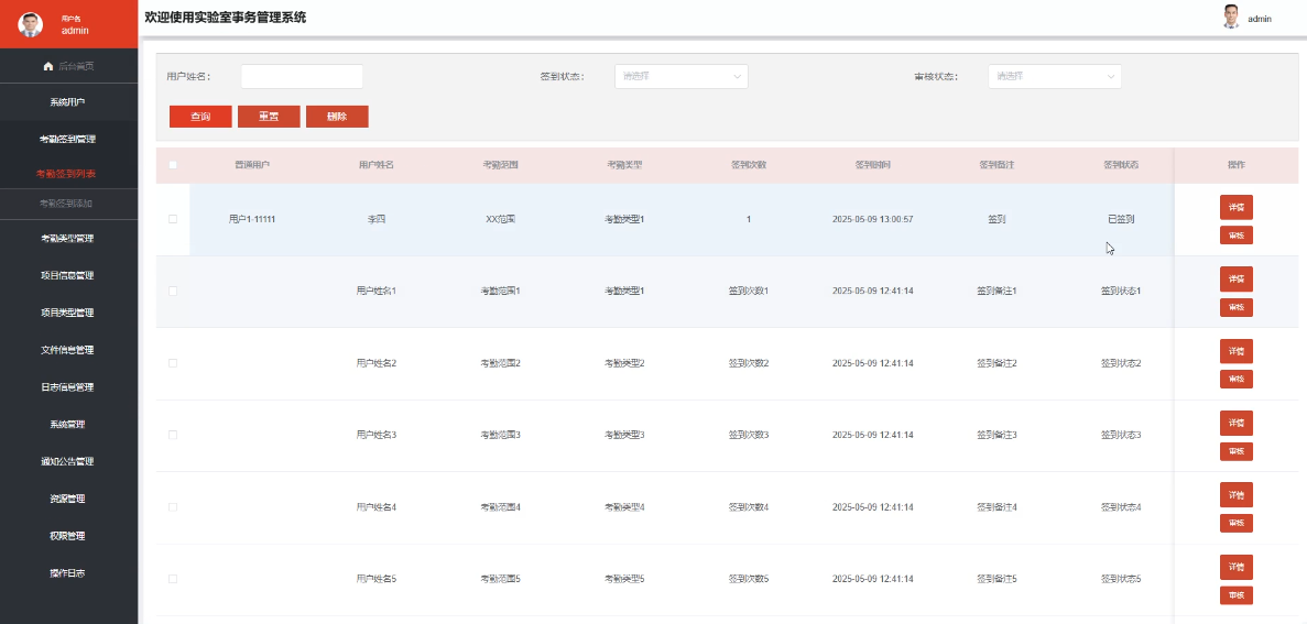 - 考勤签到管理:管理员可查看所有用户的考勤记录,包括签到时间、地点及状态等信息,支持对异常考勤情况进行核查和处理,确保考勤数据的准确性和公正性。