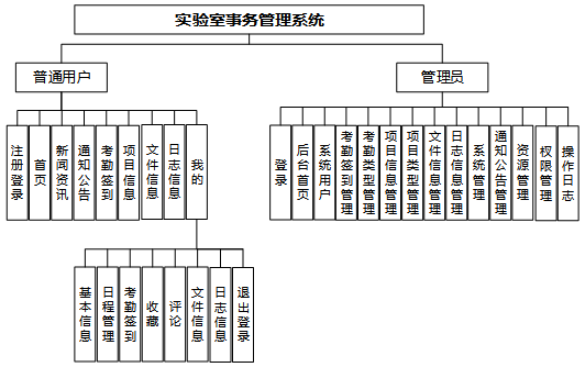 实验室事务管理系统划分为了前端模块和后端模块两大部分。