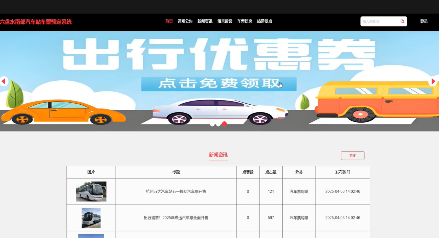 随着六盘水南部地区的经济发展和城市化进程的加快,人口流动日益频繁,对高效便捷的交通服务需求不断增加。传统的汽车票售卖方式效率低下,常导致乘客长时间排队等候,影响出行体验。为解决这一问题,提高车站运营效率和服务质量,基于Spring Boot框架开发的六盘水南部汽车站车票预定系统应运而生。该系统通过集成在线查询、预订及支付等功能,旨在简化购票流程,提升用户体验,帮助车站更好地管理资源,适应不断增长的客运需求[1]。