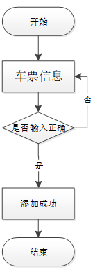 添加车票信息,输入车票详情、车票价格、车票类型等信息,并校验输入是否正确,车票信息添加流程图,如图所示: