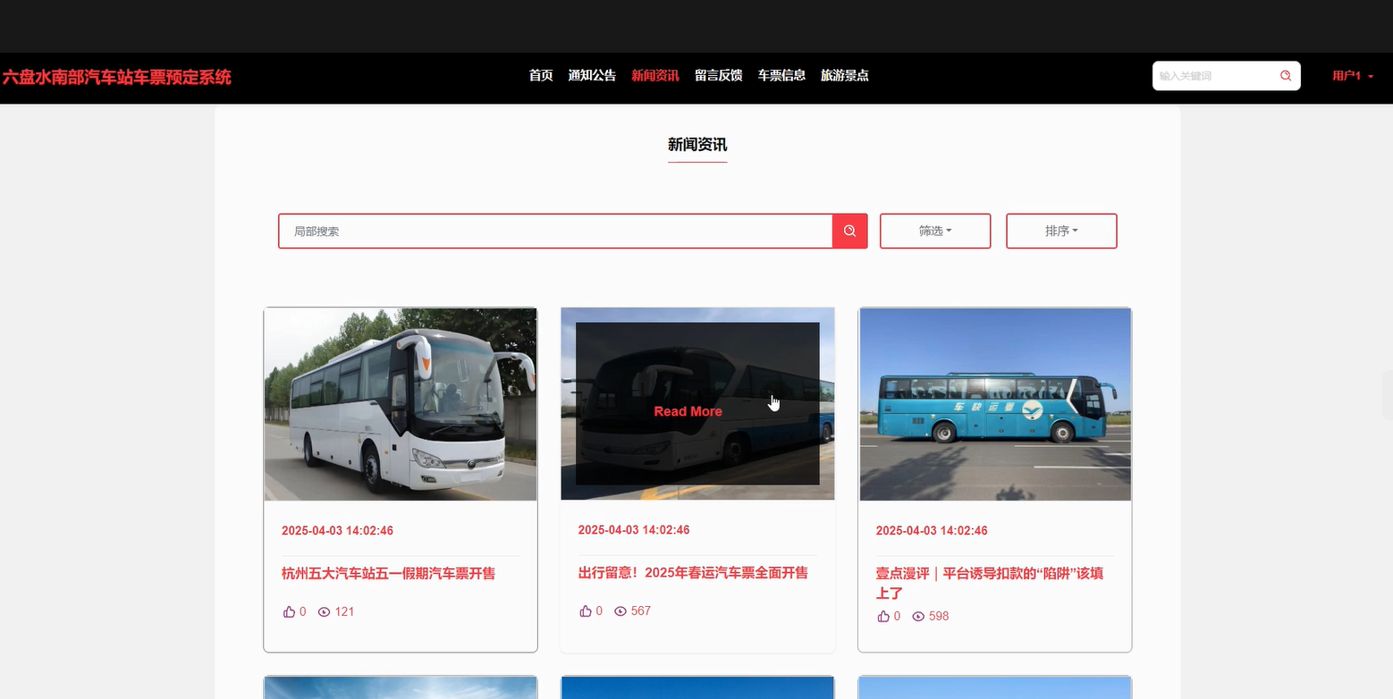 With the economic development and increasing population mobility in the southern region of Liupanshui, the demand for an efficient and convenient bus ticket booking system is growing. To address issues such as inefficiency and long queues associated with traditional ticketing methods, this paper designs and implements a bus ticket booking system for the Liupanshui Southern Bus Station based on the Spring Boot framework. The system integrates functional modules such as online inquiry, reservation, payment, and ticket cancellation, aiming to enhance user experience and service quality. By using Spring Boot as the backend framework, combined with MyBatis for data persistence and MySQL for data storage, the system can efficiently handle various business logic operations. The frontend interface is built with Vue.js, providing a user-friendly experience that allows passengers to complete the ticketing process quickly. The system also supports data analysis features, helping managers better understand order dynamics. The platform exhibits good stability and scalability, effectively meeting the daily operational needs of the station. We will continue to optimize system performance and add more personalized services to adapt to the ever-changing market demands.