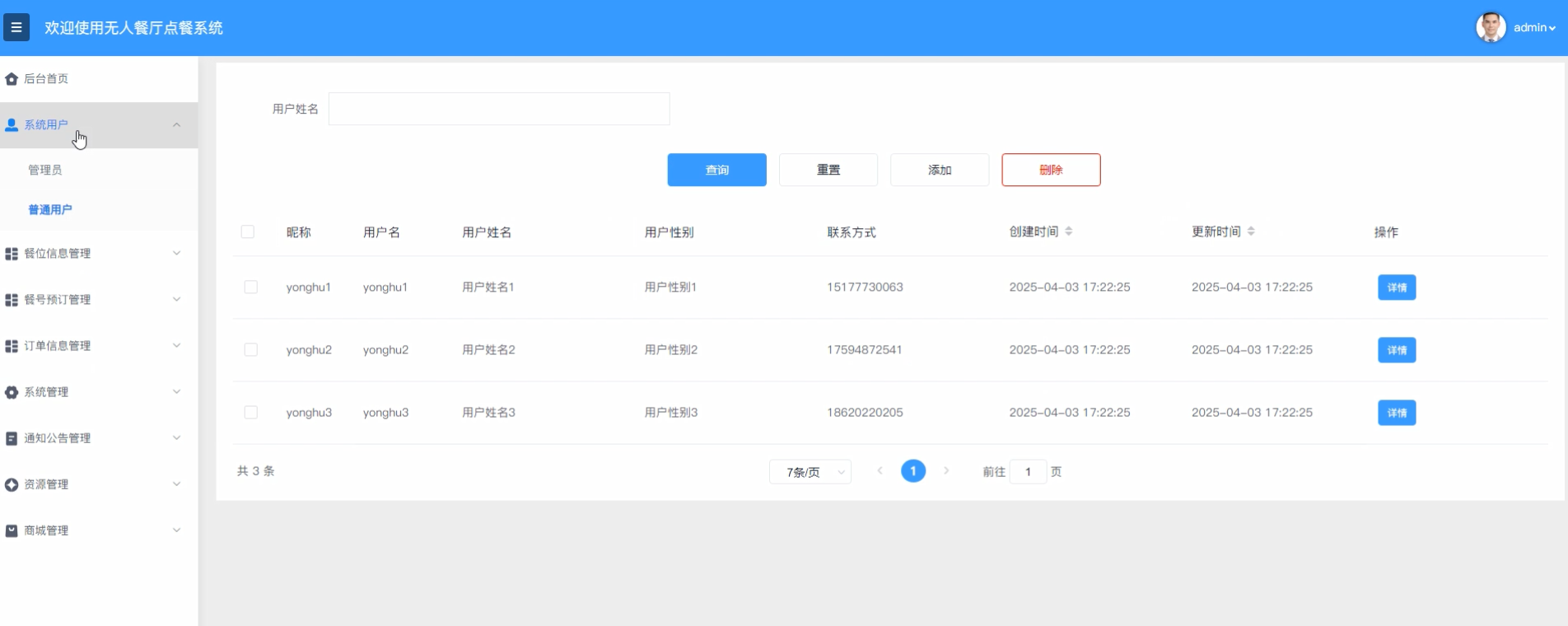 系统用户:管理餐厅的员工账号和权限,包括新增、修改、删除员工账号,分配不同的操作权限等。