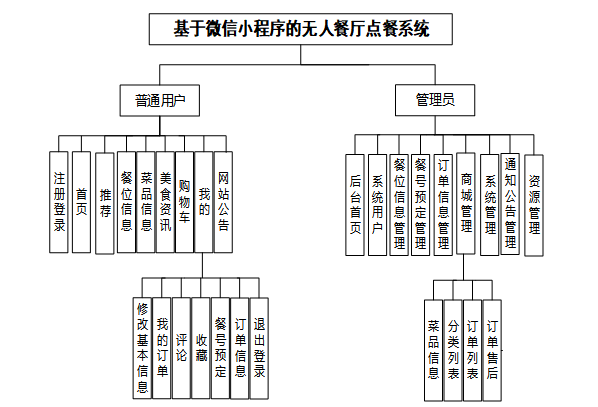 无人餐厅点餐系统划分为了前端模块和后端模块两大部分。
