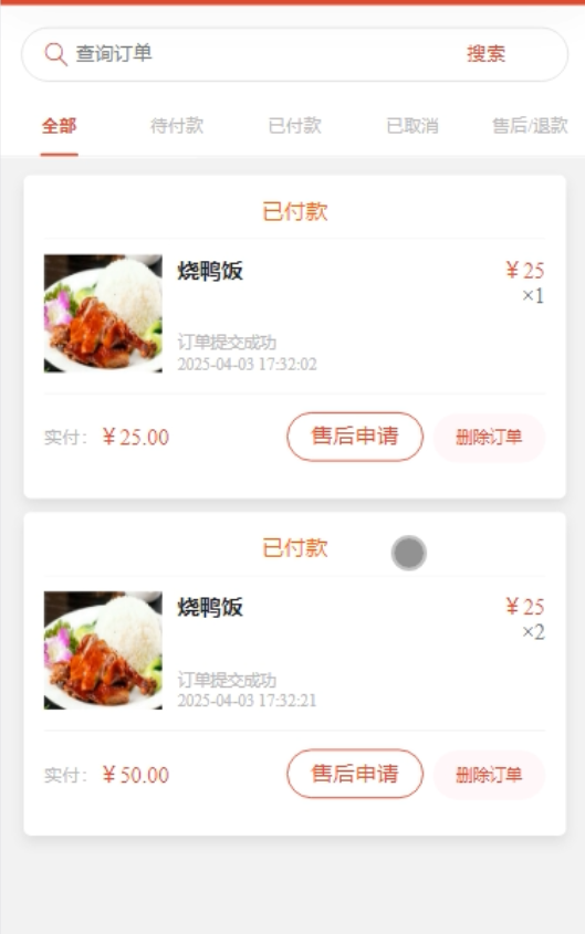 我的订单:查看自己的历史订单记录,包括订单状态、订单详情、支付信息等。