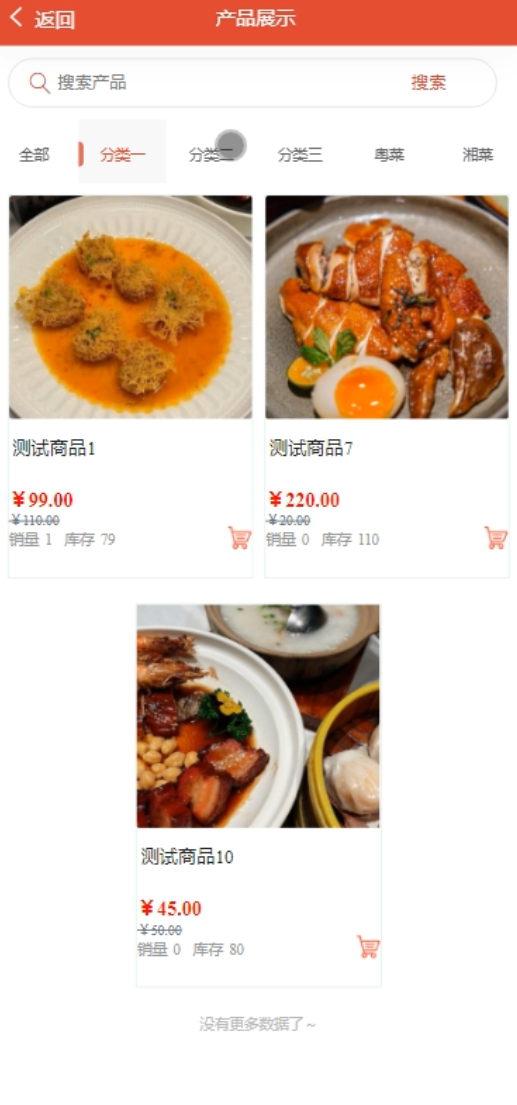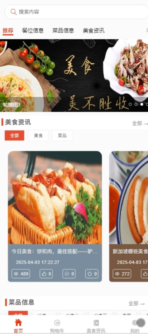 菜品信息:列出餐厅的所有菜品,包括菜品图片、名称、价格、描述、用户评价等,用户可以浏览并选择心仪的菜品加入购物车。