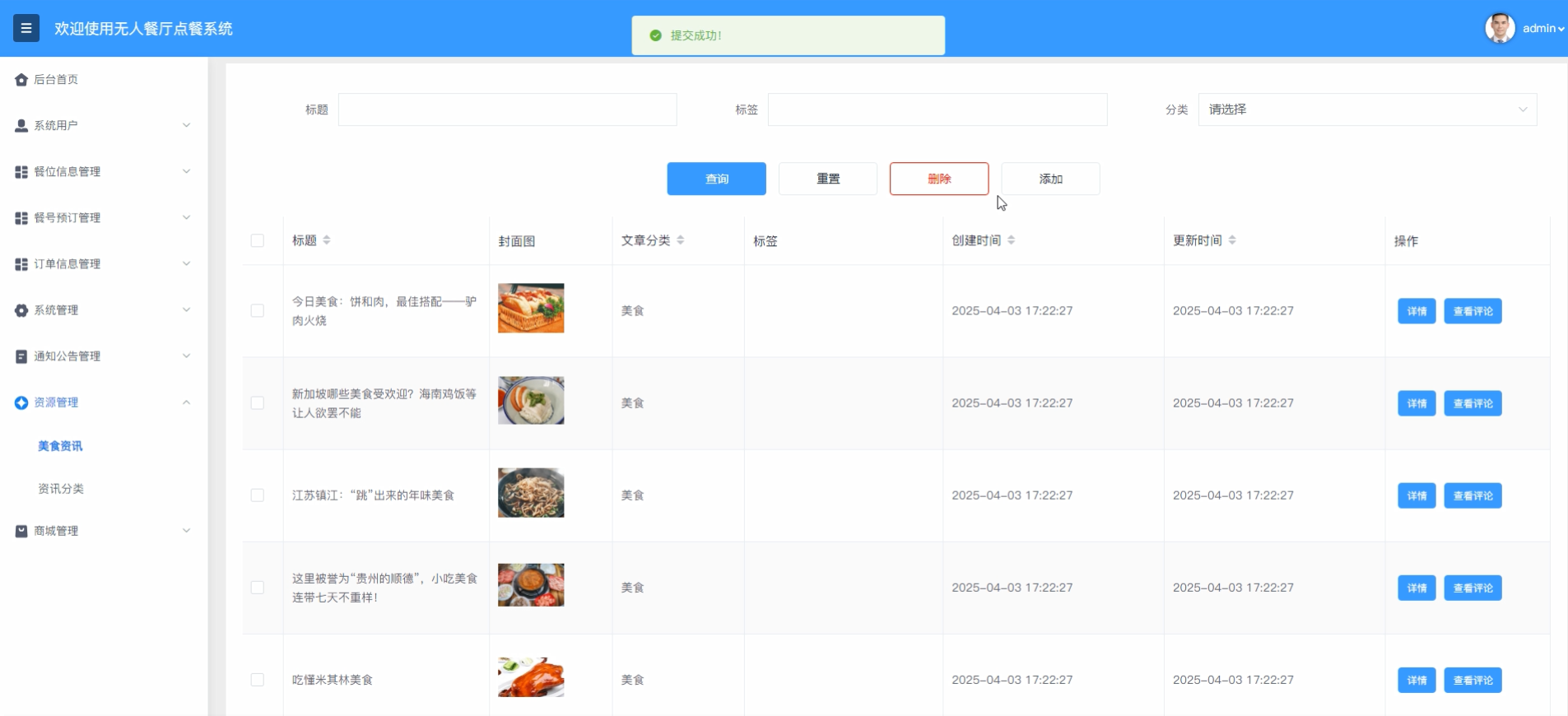 资源管理:管理餐厅的图片、视频等多媒体资源,如菜品图片、餐厅环境图片等,确保资源的及时更新和有效利用。
