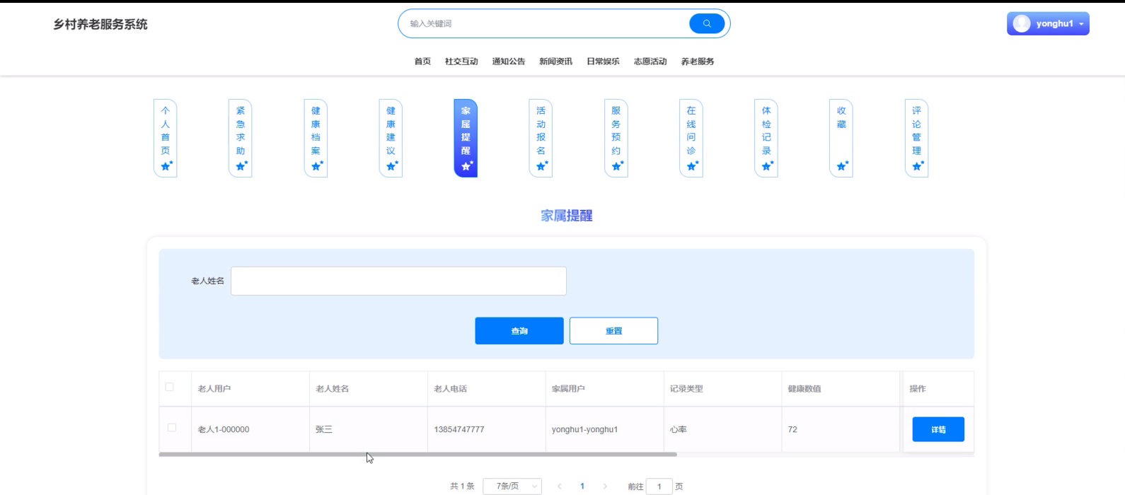 家属提醒管理:管理员可以查询、重置或删除家属提醒,帮助家属更好地关注老人的健康状况。