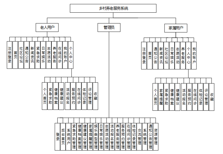 乡村养老服务系统划分为了前端模块和后端模块两大部分。