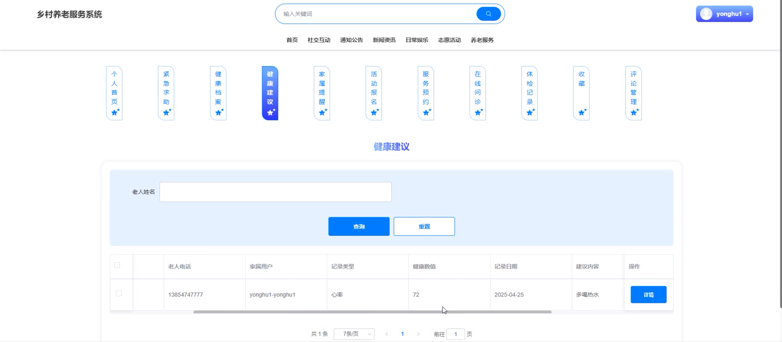 健康档案管理:管理员可以根据老人添加的健康档案信息,为老人提供个性化的健康建议和提醒服务。