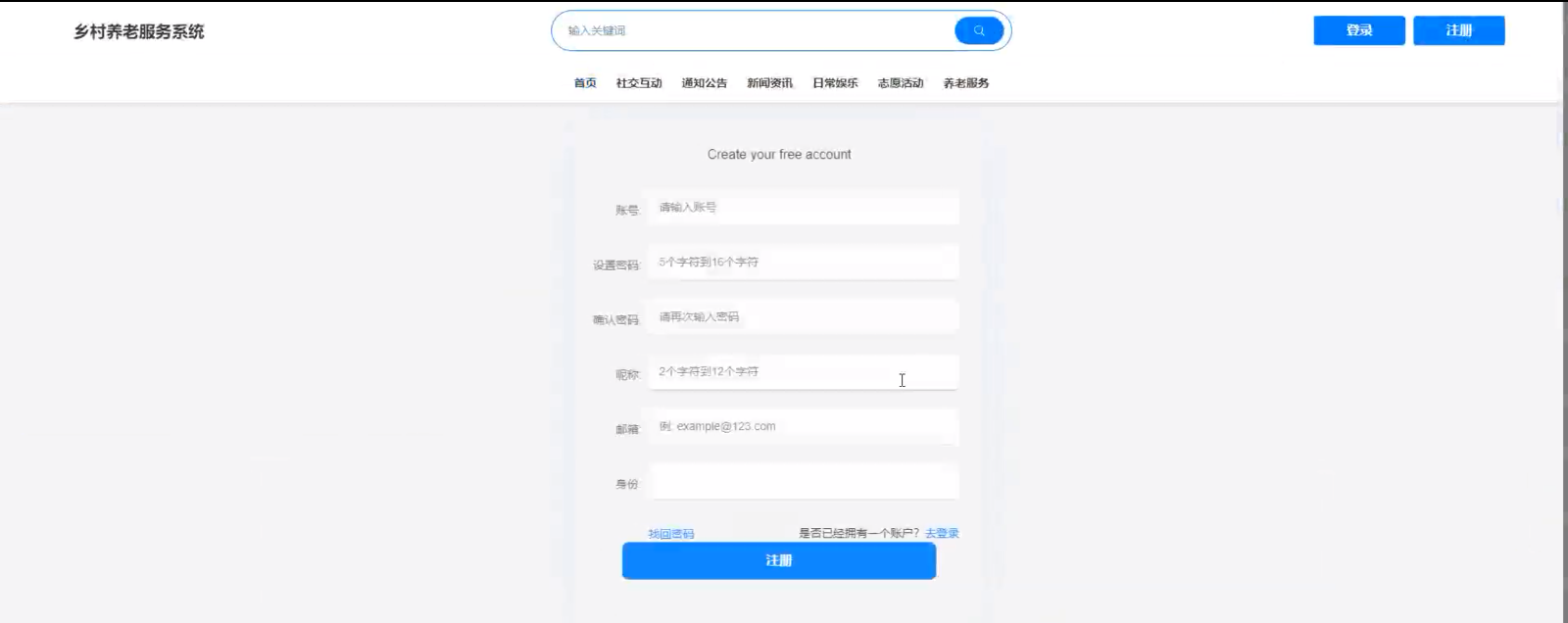 注册登录:为老人用户提供了便捷的注册和登录功能,使他们能够轻松地访问和使用平台的各种服务。