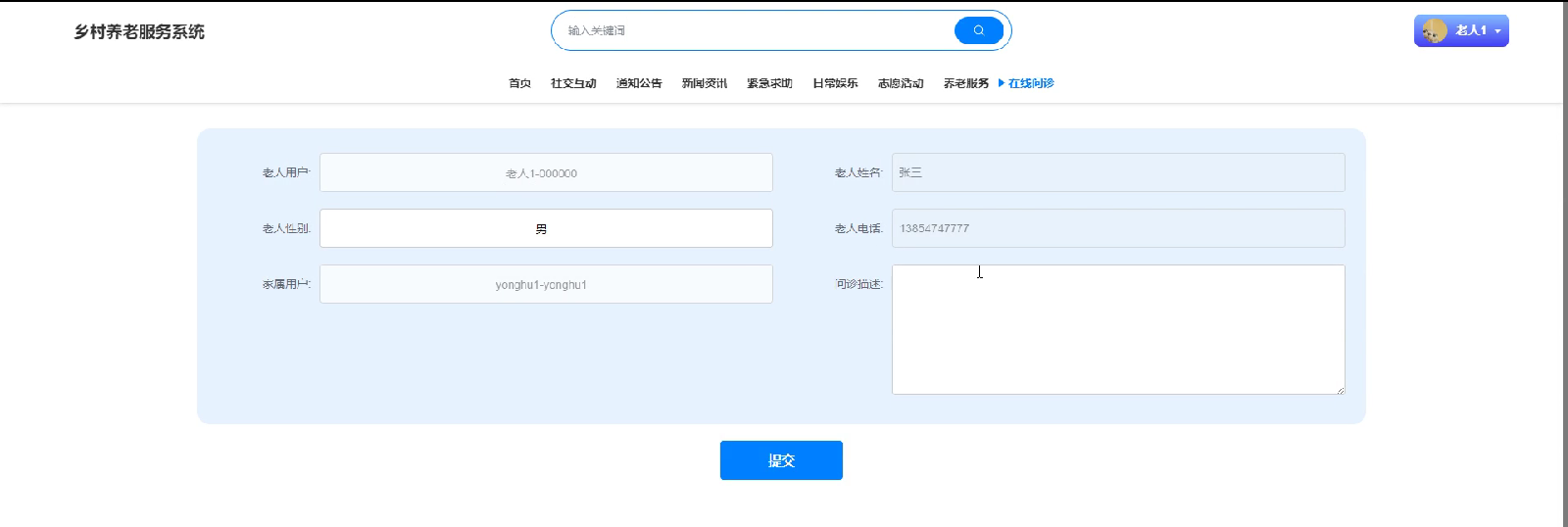 在线问诊:为老人用户提供了便捷的在线问诊服务,使他们能够及时获得专业的医疗咨询。