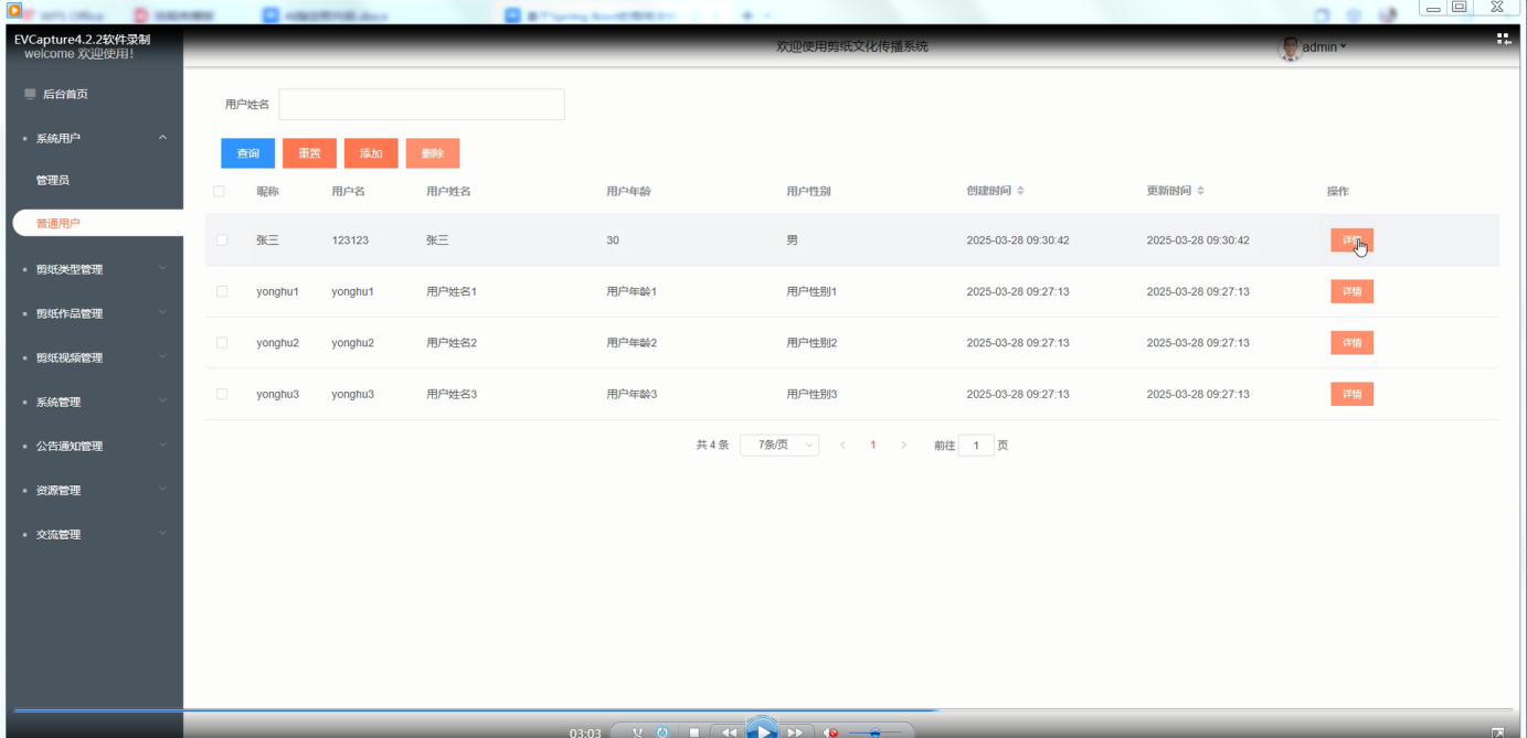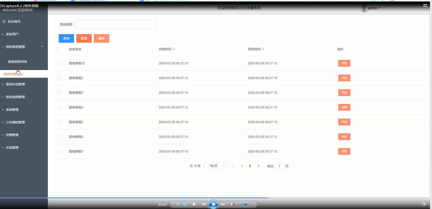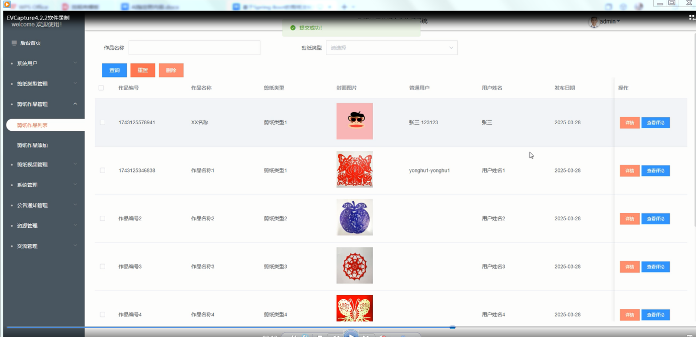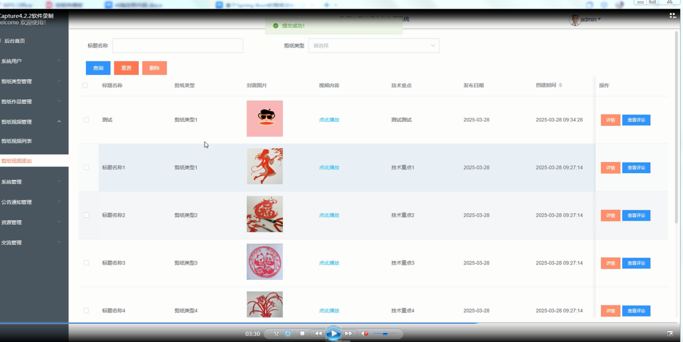 剪纸视频管理:管理用户上传的剪纸视频,进行审核与修改。