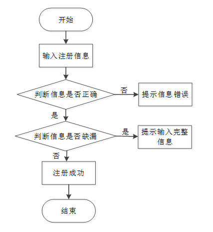 未有账号的用户可进入注册界面进行注册操作,填写注册表格,包括用户名、密码、电子邮件等必要信息。后台系统验证并保存用户提交的信息。分配唯一用户标识符。注册成功后,用户可以使用账号密码进行登录。用户注册流程图如图3-5所示。
