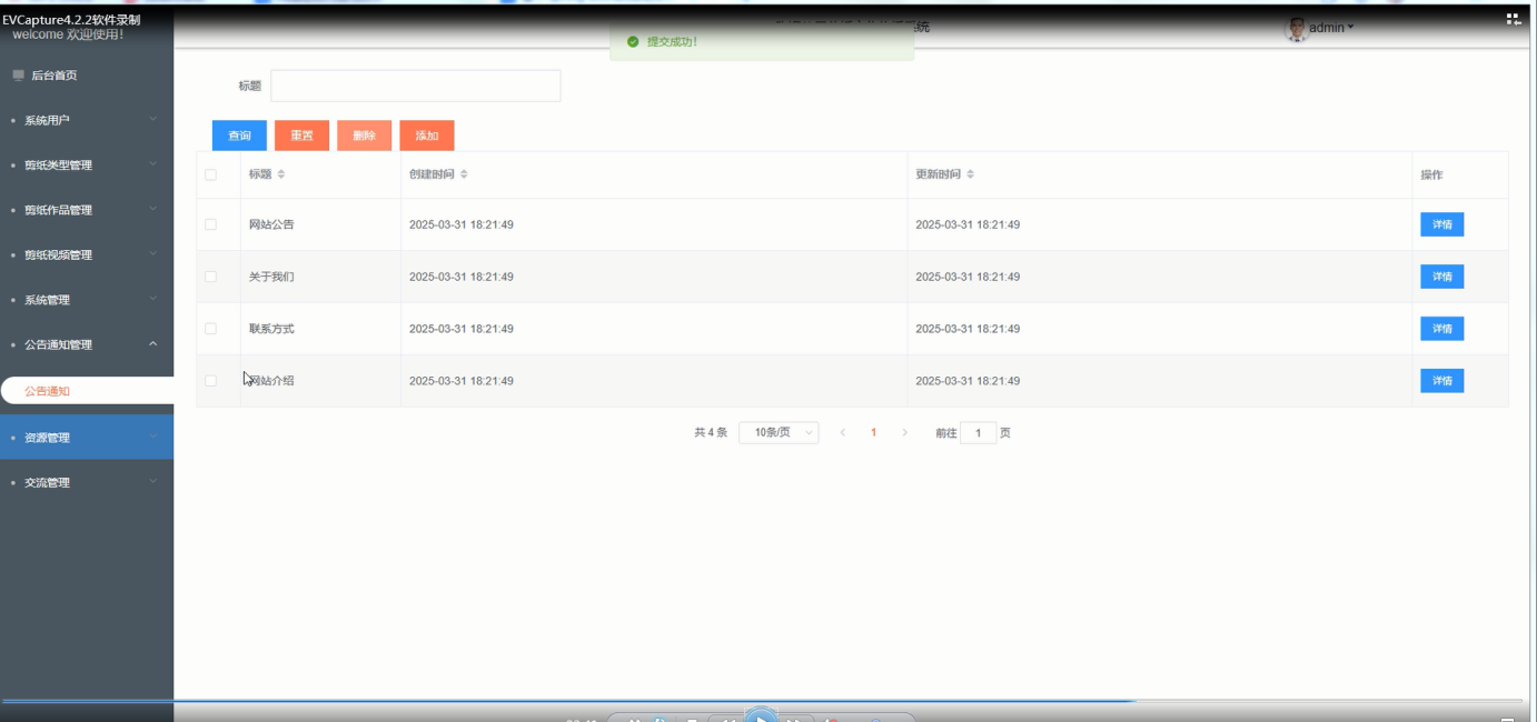 管理员点击“公告通知管理”这个菜单,可以对系统中的公告通知进行管理,包括公告的增删改查等操作。公告通知管理界面如下图所示。