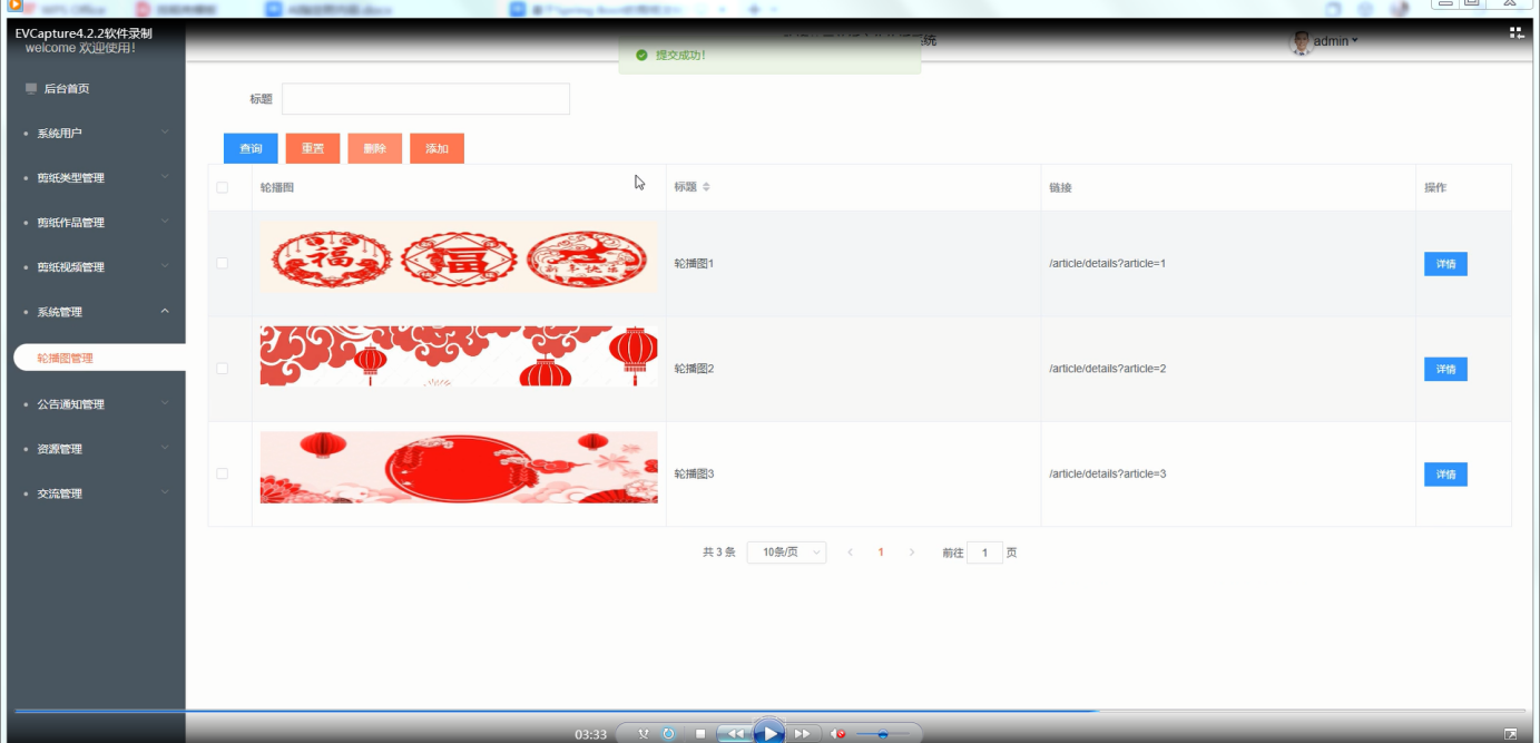 管理员点击“系统管理”菜单,可以对前台展示的轮播图进行设置,系统管理界面如下图所示。
