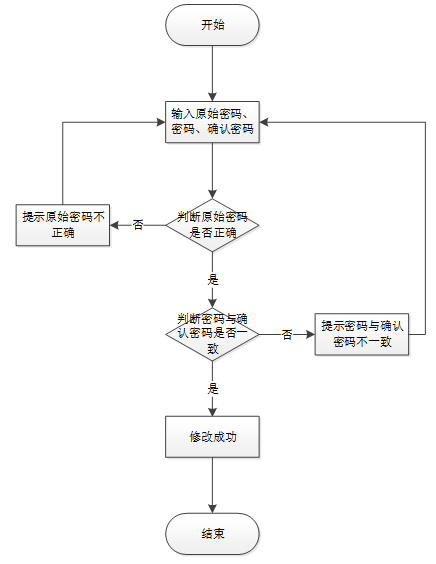 所有用户可以我的账户信息页面,点击修改修改密码进行修改登录密码操作,修改密码流程如图所示: