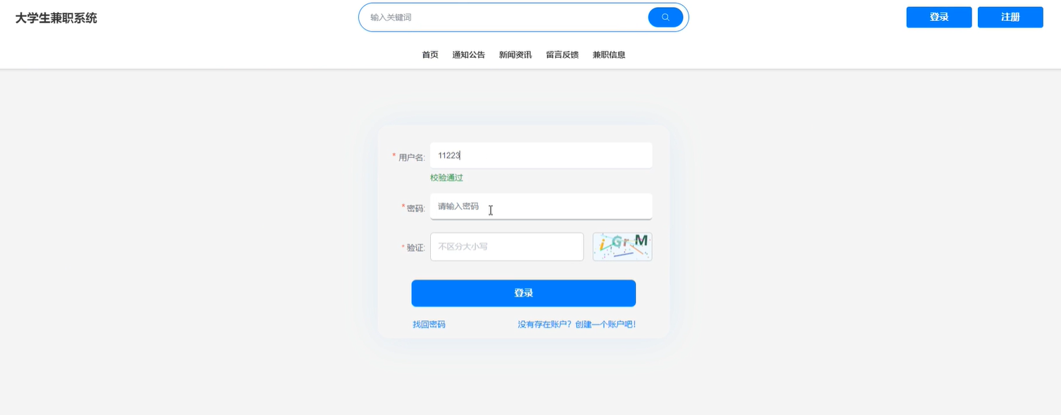 在本次主要测试用户登录、修改密码、查看兼职信息操作以及管理员添加、删除、修改兼职信息等业务流程操作。验证所有操作都能够正常运行,因此能够保证本次设计的,已实现的功能能够正常运行并且相关数据库的信息也同样保存正确。