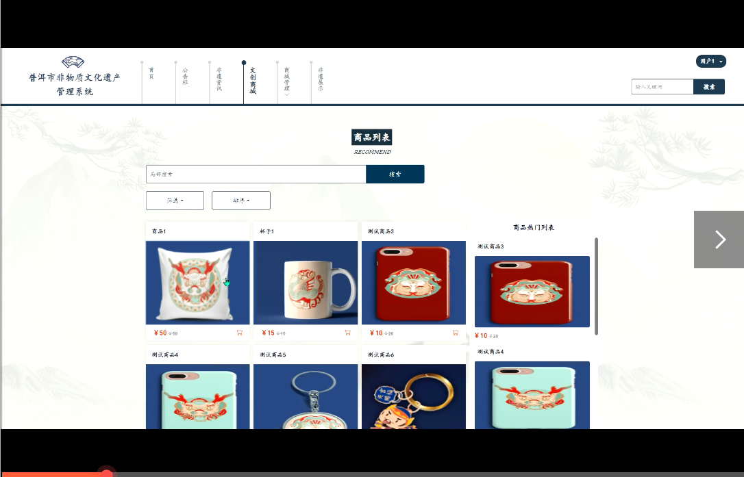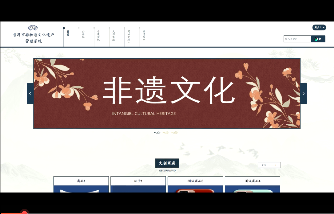 首页: 展示系统的概览信息,包括最新的非遗文化、文创商城等内容,让用户快速获取相关信息。