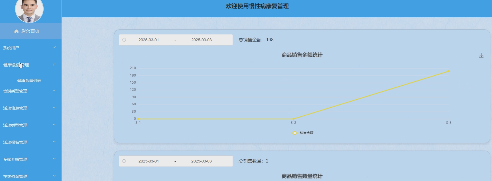 With the acceleration of social aging, the number of chronic disease patients is increasing year by year, and the management and rehabilitation of chronic diseases have become important issues in modern medical and health management. The long-term treatment and rehabilitation management of chronic diseases not only require active participation from patients, but also effective support and guidance from medical professionals. The traditional management model often faces problems such as information lag, poor communication, and scattered resources, and urgently needs an efficient system to improve management effectiveness and ensure timely and effective monitoring and feedback of patients' health data.