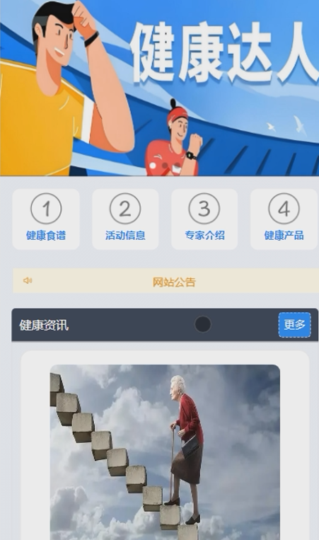 首页是用户进入系统后的第一界面,展示了健康食谱、活动信息、专家介绍、健康产品等内容。用户首页界面如图5-3所示。