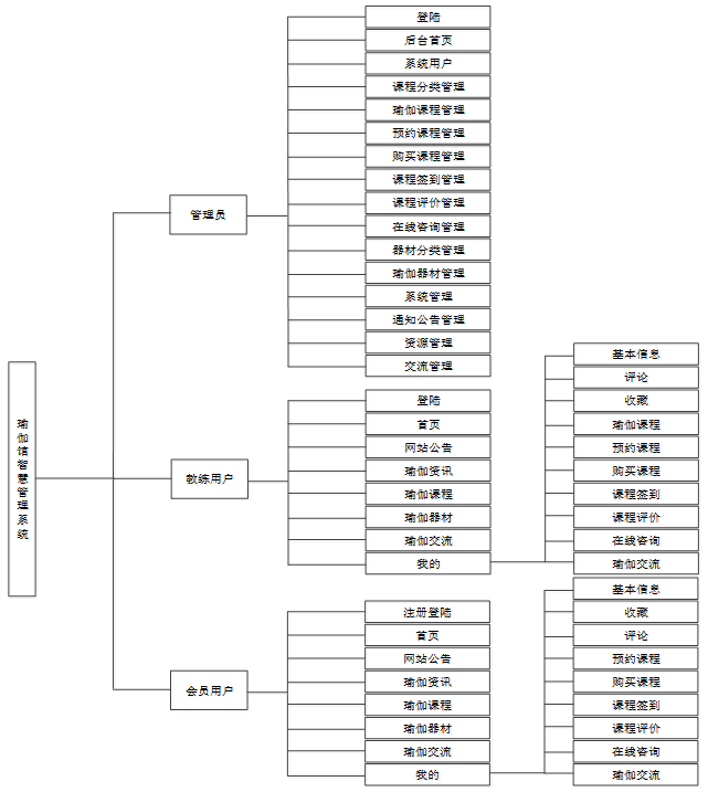瑜伽馆智慧管理系统的完整UML用例图分别是图3-1、3-2、3-3。