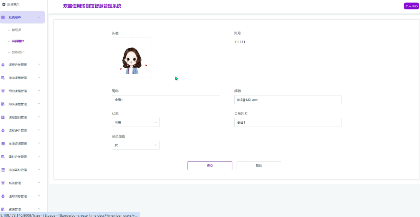 - 通知公告管理:管理员可以添加、删除和查询通知公告,这些公告用于向会员传达重要信息,如课程变动、特殊活动或系统更新。