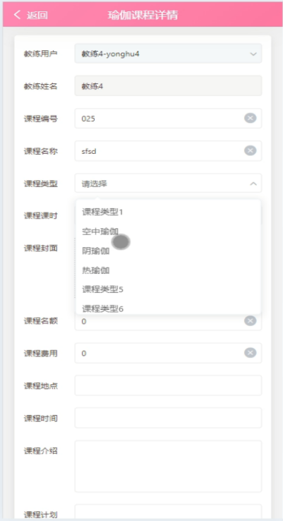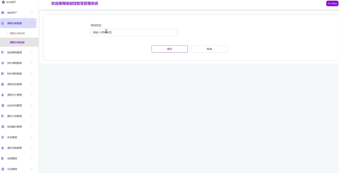 - 课程分类管理:管理员可以添加、删除和查询课程分类,同时能够查看每个分类的详细信息。这有助于对瑜伽课程进行有效分类,方便会员用户根据自己的需求选择合适的课程。
