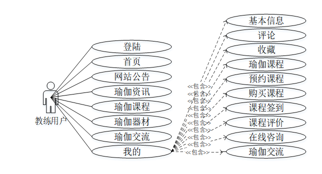 图 3-2瑜伽馆智慧管理系统教练用户角色用例图