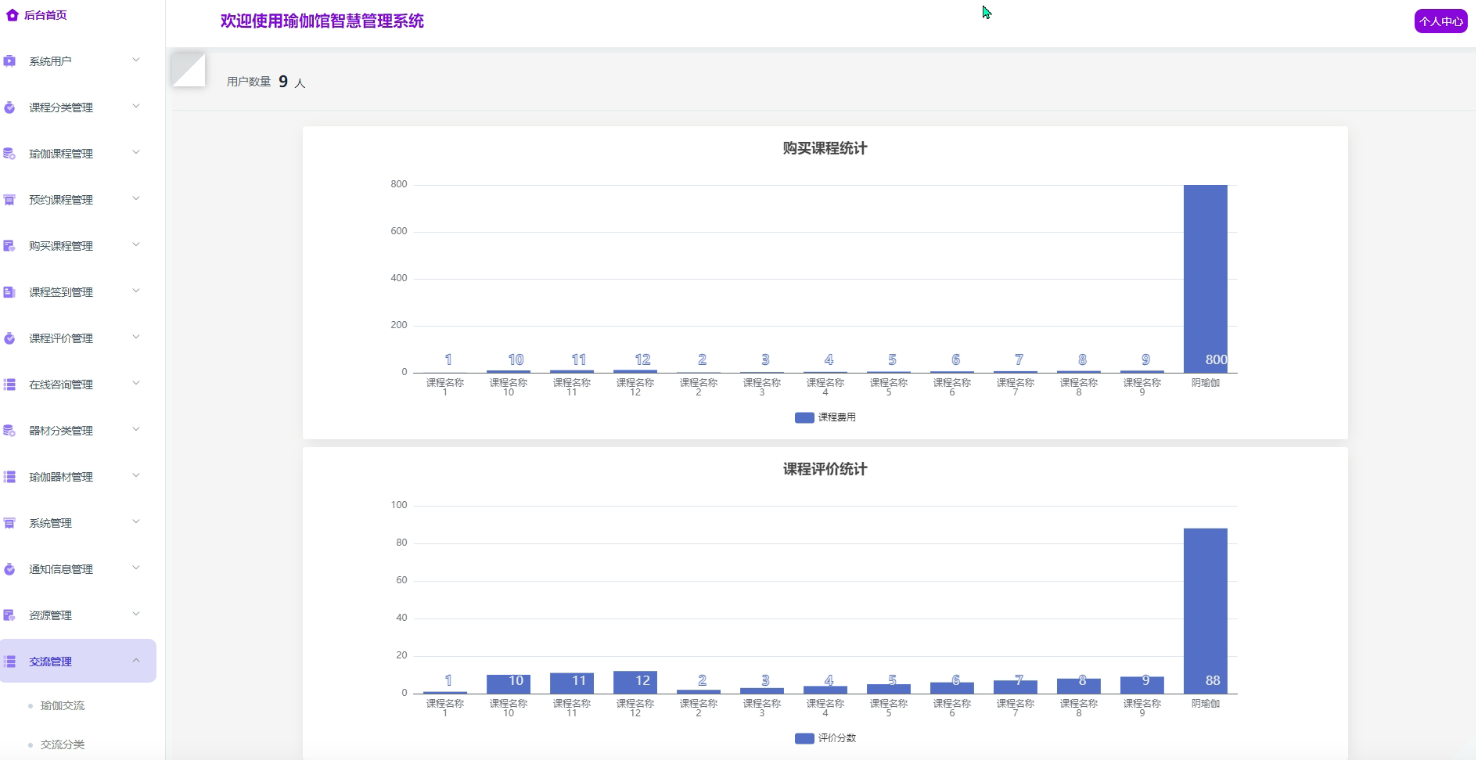 - 交流管理:管理员可以添加、删除和查询瑜伽交流及其分类。通过管理交流区,管理员可以促进会员之间的互动,建立瑜伽社区的氛围。
