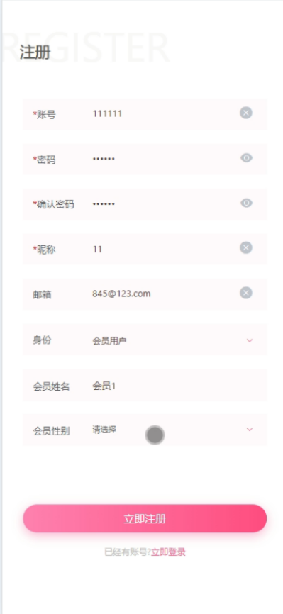 - 注册登陆:该模块允许新用户创建账户,并为现有用户提供登录功能。注册时,用户需填写必要的信息,如用户名、密码、邮箱等,并进行邮箱验证。登录功能支持用户通过输入用户名和密码进行身份验证,以访问其个人账户信息和享受会员服务。