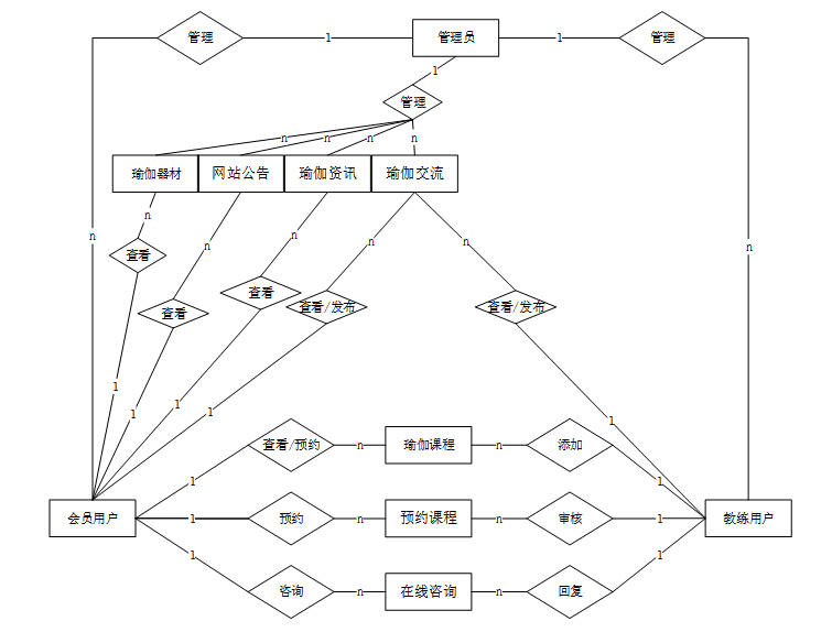 - 瑜伽课程管理:此功能允许管理员添加新的瑜伽课程,删除不再提供的课程,查询现有课程,并查看课程的详细信息。管理员还可以查看会员对课程的评论,从而了解课程的受欢迎程度和改进空间。