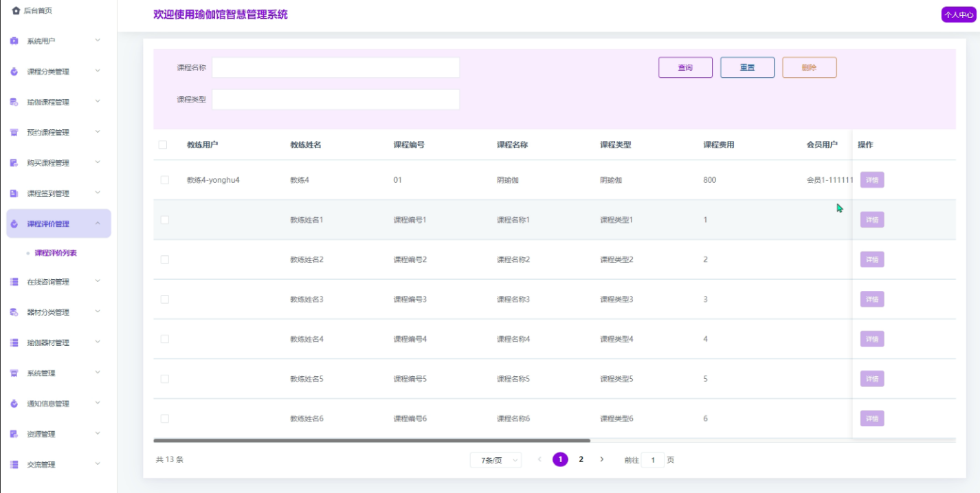 - 课程评价管理:管理员可以删除不当的评价,查询课程的详细评价信息。这有助于收集会员反馈,持续改进课程内容和服务。