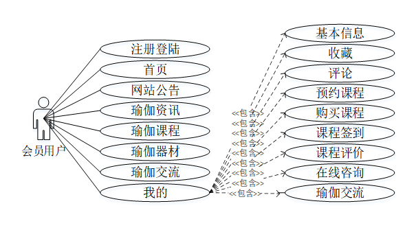 图 3-1瑜伽馆智慧管理系统会员用户角色用例图