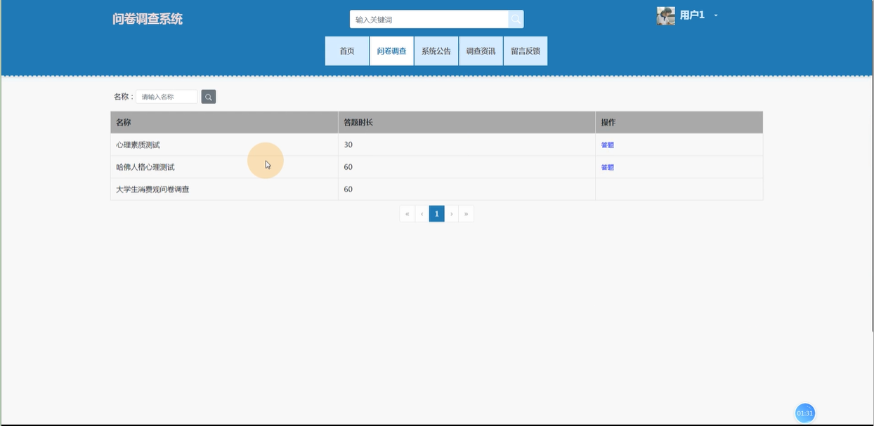 The Java based questionnaire survey system is developed using the SpringBoot framework, with the aim of providing users with an efficient and convenient platform for questionnaire management and data analysis. The system supports participating users, design users, and administrators to create, fill out, review, and analyze questionnaires through permission control of different roles, ensuring efficient execution of various functions. Participating users can fill out questionnaires, submit feedback, view survey results and related information through the platform; Design users are responsible for designing questionnaires, managing question banks, and conducting data analysis; Administrators are responsible for the overall management of the system, including user management, data statistics, and message feedback.