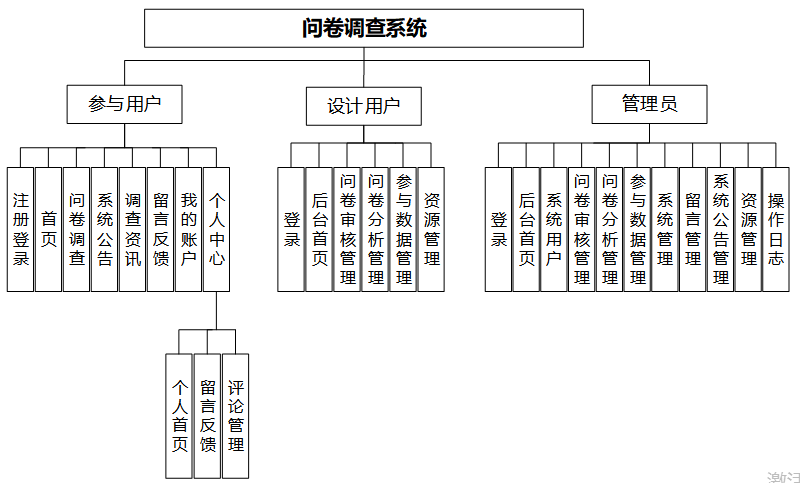 问卷调查系统划分为了前端模块和后端模块两大部分。