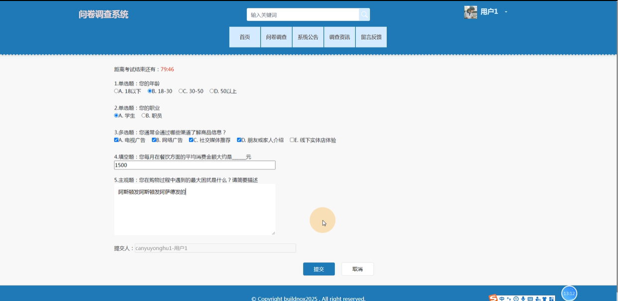 问卷调查:参与用户可以选择并参与各个科目的问卷答题,参与填写调查问卷,完成各项调查任务,帮助平台收集数据和反馈。