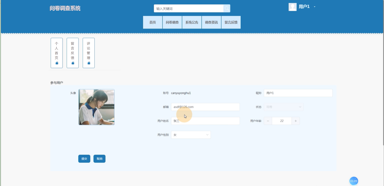个人首页:在个人首页,用户可以查看自己参与的问卷记录、反馈信息及评论内容,方便管理个人信息和活动记录。