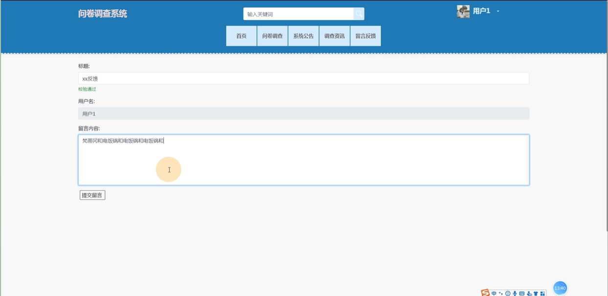 留言反馈:参与用户可以查看留言列表,并提供反馈。用户能够填写标题和内容提交自己的反馈,帮助系统改进和优化。