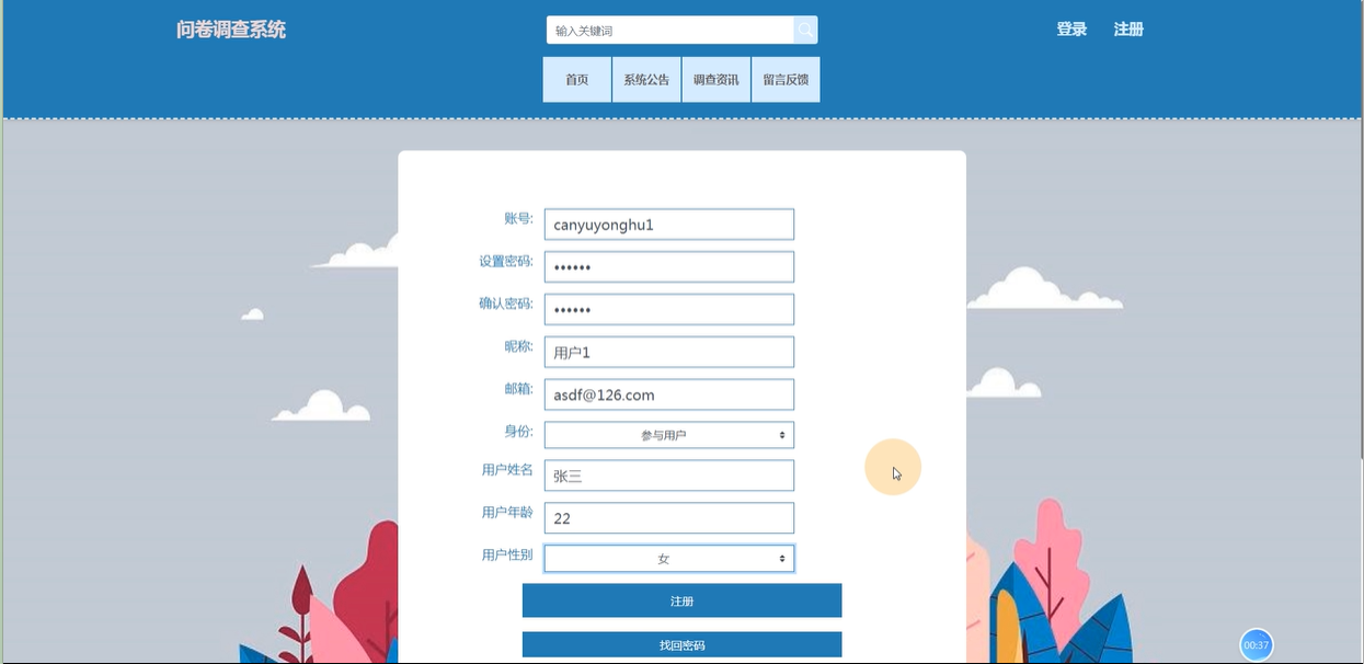 The system adopts a front-end and back-end separation architecture, with Vue framework used in the front-end to enhance user interaction experience, and Spring Boot framework used in the back-end to ensure system performance and scalability. To ensure the security and accuracy of data, the platform provides detailed operation logs and data statistics functions to help administrators efficiently manage platform content and optimize the effectiveness of questionnaire surveys. The overall design not only improves the efficiency of questionnaire surveys, but also enhances the transparency and management convenience of information, with strong social application value.