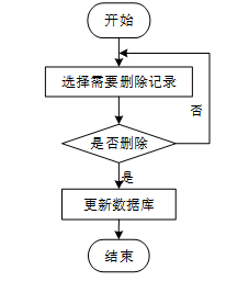 用户选择需要删除的记录后,系统判断是否确认删除。若未确认,返回选择环节;若确认删除,则更新数据库,删除对应记录,完成操作后流程结束。删除信息流程图如图3-9所示。