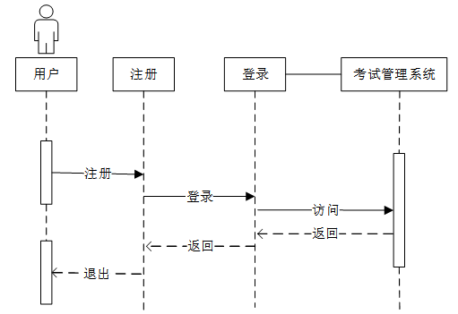 用户通过注册模块发送注册请求,系统完成注册后返回确认信息。随后,用户通过登录模块发送登录请求,系统验证用户信息后允许访问目标系统。用户完成操作后可选择退出,系统终止会话。注册时序图如图4-3所示。