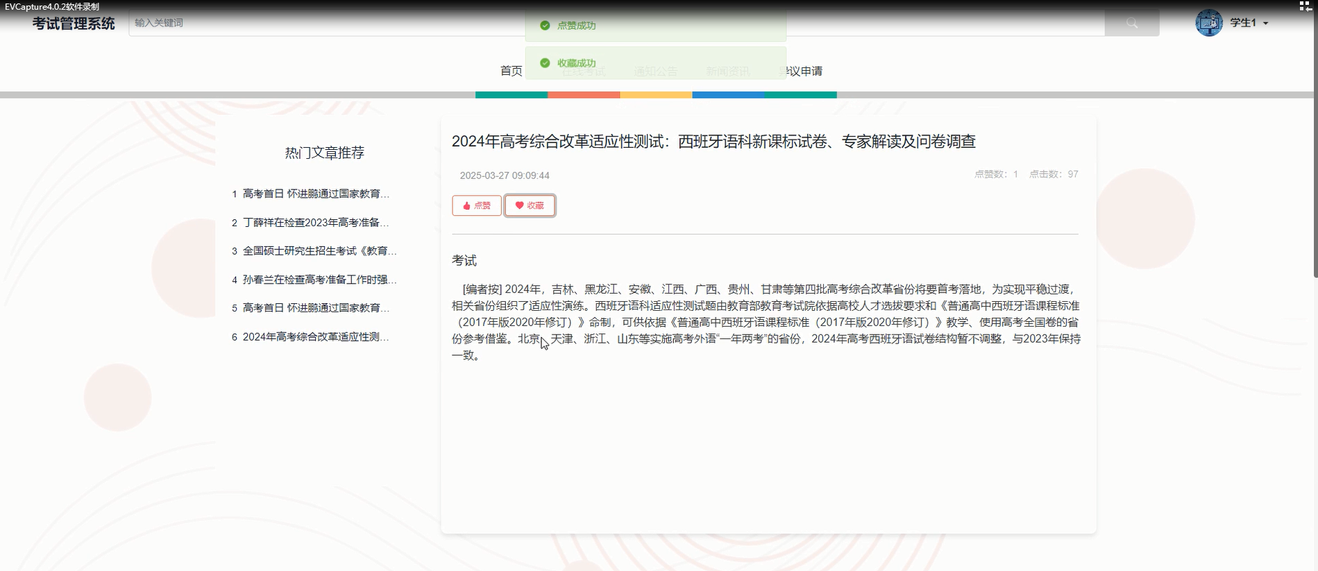 收藏管理:学生可查看自己收藏的试题或资讯内容,并支持删除操作,方便复习和回顾。
